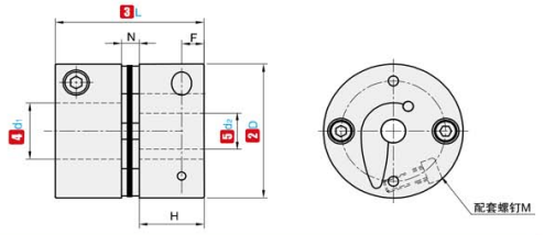 ①NO. ②D ③L  ④d₁ ⑤d₂ Optional range N F H M Tightening screw torque